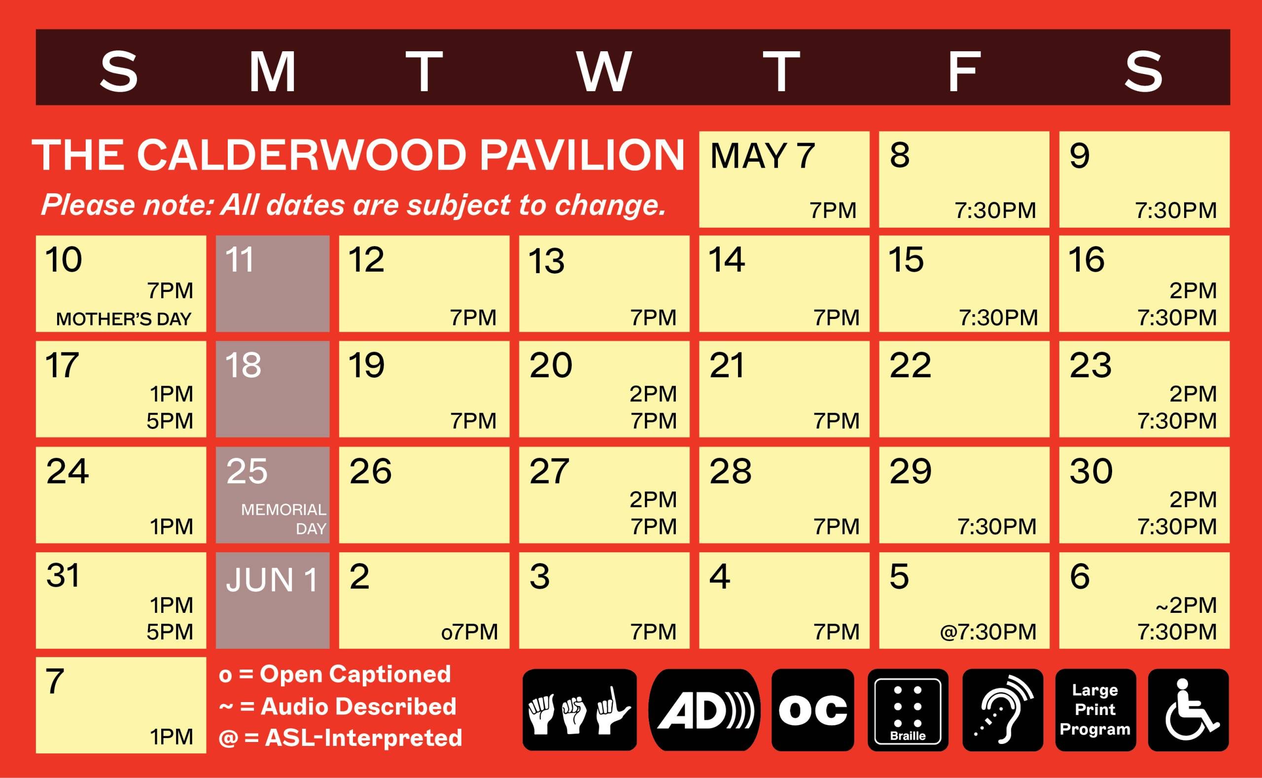 Large Print and Braille Programs will also be available for patrons at performances.